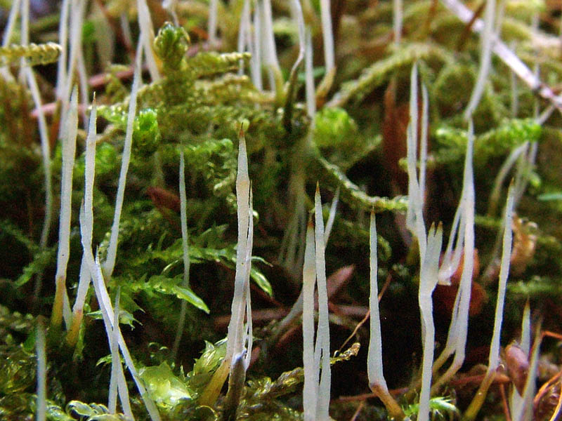 Эокронарциум мохолюбивый (Eocronartium muscicola), высота 1-2 см